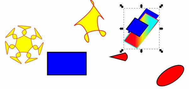Predmete, ki jih združimo, se obnašajo kot en predmet, ki mu lahko določimo enotno barvo, preliv, ga vrtimo, pomanjšamo, zrcalimo …