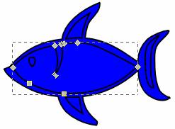 - Postavitev predmetov, ki sestavljajo sliko ribe lahko uredimo s pomočjo kombinacije tipk (PgUp, PgDN, Home in End) ali s klikom na eno od ikon orodne vrstice
